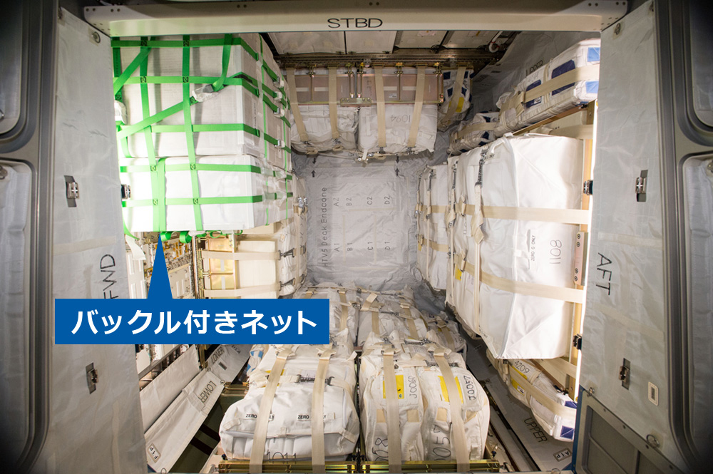 「こうのとり」は、無人の補給船で、食糧や衣類、各種実験装置など最大6トンの補給物資をISSに届けます。その物資を安全に送り届ける為に、弊社製品「バックル付ネット(グリーン色)」が、荷物の固定ベルトとして採用されました。過酷な宇宙空間に耐えられる高い信頼性が求められる宇宙開発で、弊社製品がJAXA有人宇宙技術センター様に採用された事は、名誉なことであり、今後の基盤となる技術の蓄積が可能となります。さらなる飛躍にご期待ください。