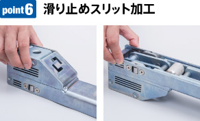 本体の角を丸くすることで、レール内での裏返しが可能になり操作性が向上しました。